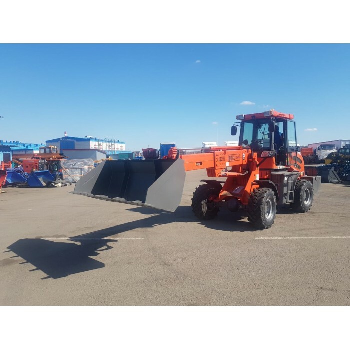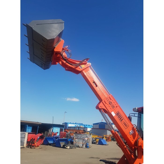 Телескопическая стрела, комфортабельная кабина, отопители салона, магнитола с USB, камера заднего вида, очиститель и омыватель стекол, проблесковый маячок желтого цвета, электрический предпусковой подогреватель, управление джойстиками, ковш стандартный с зубьями.