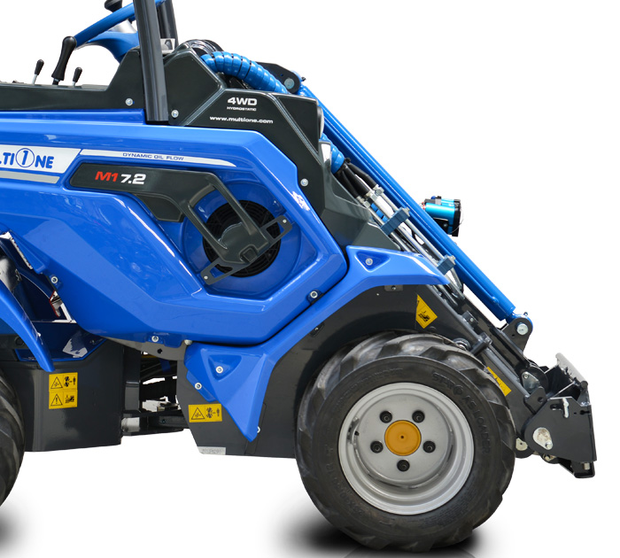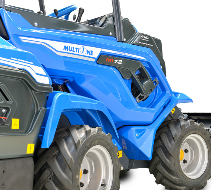 Серия MultiOne 7 — это выигрышное сочетание мощности, скорости и маневренности. Мощный двигатель и радиально-поршневые моторы с прямым приводом обеспечивают высокую скорость и силу толкания. Новая рама и телескопическая стрела обеспечивают высокую грузоподъемность и маневренность. Серия MultiOne 7, опирается на сильные стороны самых успешных многофункциональных мини-погрузчиков: многофункциональность и производительность. Сочлененные мини-погрузчики серии MultOne 7 — это идеальная машина, предназначенная для профессионалов в сельском хозяйстве или строительстве, а также в коммунальном хозяйстве которые ищут альтернативы бортовым погрузчикам.